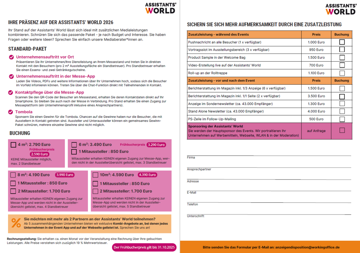 Herzlich willkommen als Aussteller auf der Assistants' World!